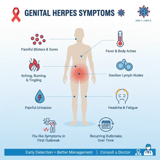 Genital herpes is a common viral infection that many people have but do not always talk about. It can affect both men and women and is usually spread through skin-to-skin contact during intimacy. Even though it stays in the body for life, it can be managed well with the right care and awareness.