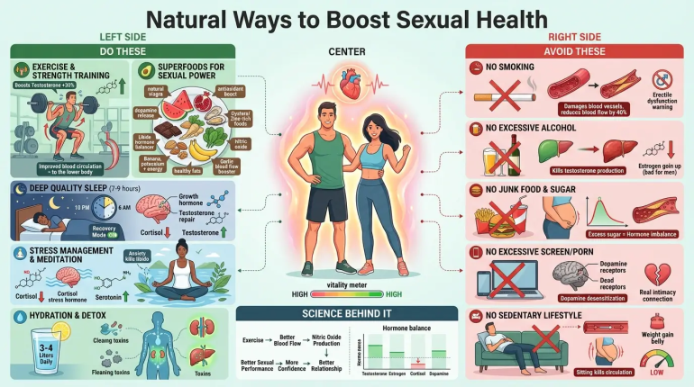 Simple lifestyle changes for health can help improve sexual performance and build confidence over time. From choosing the right food for sexual energy to focusing on sleep and sexual health, every step matters.