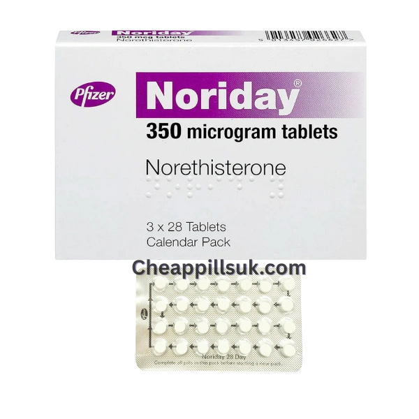 Noriday is a progestogen-only contraceptive pill used to prevent pregnancy. It contains norethisterone 350 micrograms as the active ingredient. Noriday works mainly by thickening cervical mucus, which stops sperm from reaching the egg, and by making the womb lining less suitable for pregnancy. In some women, it may also affect ovulation. It is taken every day at the same time without any breaks. Noriday is often chosen by women who cannot take oestrogen.