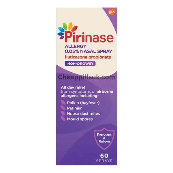 Pirinase Allergy Nasal Spray is used to control hay fever and nasal allergy symptoms. It helps reduce sneezing, blocked nose, runny nose, and sinus discomfort by calming inflammation inside the nasal passages. The spray works directly where the problem starts, giving steady control with regular use. It is suitable for daily use during allergy seasons and helps you breathe more easily. With consistent use, Pirinase supports clear nasal passages and better comfort throughout the day.