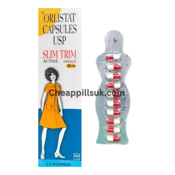 Slim Trim Active 60 mg contains orlistat 60 mg and is used to help adults manage body weight along with a balanced diet. The capsule works in the digestive system during meals and reduces the amount of fat the body absorbs from food. The extra fat leaves the body through normal digestion. This lowers the calories taken from fatty meals. Slim Trim Active is usually taken with meals that contain fat and supports gradual weight control when combined with healthier eating habits.