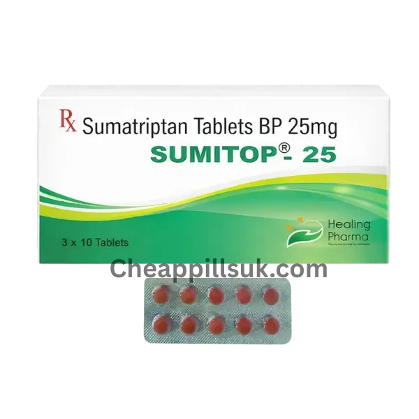 Sumitop 25 mg contains sumatriptan and is used to treat migraine attacks with or without aura. It works by narrowing widened blood vessels in the brain and reducing pain signals that cause migraine symptoms. This helps relieve headache pain, as well as nausea, light sensitivity, and sound sensitivity. It is taken only when a migraine starts and not for daily prevention. Using it early during an attack gives better relief. Follow the exact dose your doctor advises and avoid overuse.